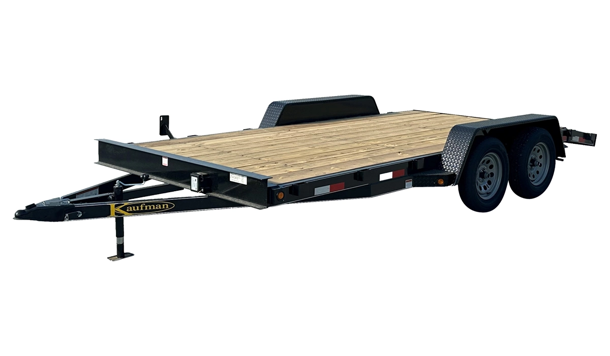 Kaufman’s Standard 8000 GVWR Flatbed Utility Trailer is constructed with a 5″ channel frame, and 4″ channel full length wrap-around tongue. The running gear upgrades to 4K axles with larger 225/15 LRD radial tires.